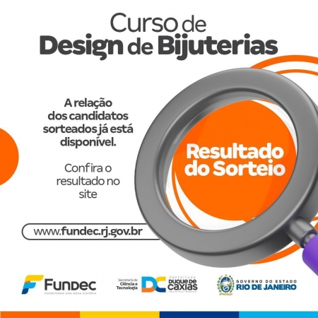 A Prefeitura de Duque de Caxias, através da Fundação de Apoio à Escola Técnica, Ciência, Tecnologia, Esporte, Lazer, Cultura e Políticas Sociais (Fundec), informa que já está disponível o resultado do sorteio para o curso de Design de Bijuterias. Os interessados podem conferir o resultado no site da Fundação: www.fundec.rj.gov.br/edital.php.