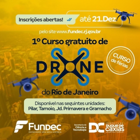 A Secretaria Municipal de Ciência e Tecnologia, em parceria com a Fundec, abriu, na última segunda-feira (12), as inscrições para o Curso de Formação Básica de Piloto de Drone. A nova especialização faz parte do projeto de cursos de férias da Fundec, que entregará para Duque de Caxias o primeiro curso gratuito de drone do Rio de Janeiro..