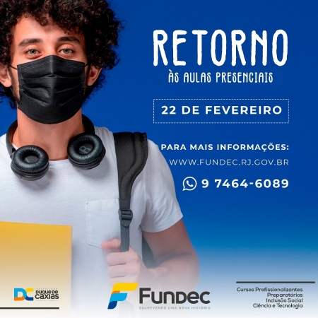 A Prefeitura de Duque de Caxias organizou a volta às aulas da Fundec - Fundação de Apoio à Escola Técnica, Ciência, Tecnologia, Esporte, Lazer, Cultura e Políticas Sociais, para a próxima segunda-feira (22), de acordo com o decreto nº 7.814, de 3 de fevereiro de 2021. .