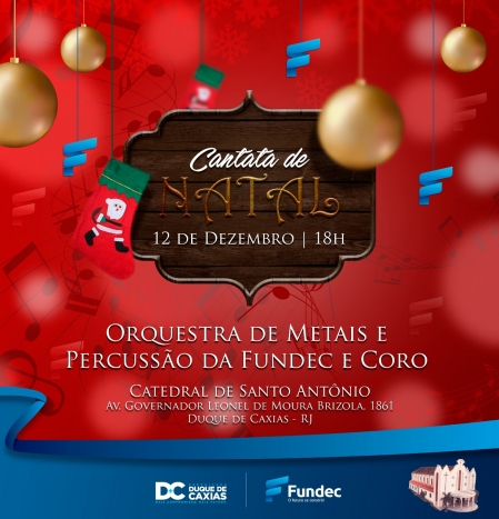 A Prefeitura de Duque de Caxias, através da Fundec, vai realizar na próxima quarta-feira, 12/12, sua Cantata de Natal, com início às 19 horas, na Catedral de Santo Antônio. O evento será produzido pelos alunos do Conservatório Musical da Fundec e contará com a Orquestra de Metais, Percussão e Coro, comandada pelo maestro Tiago Farias, como parte das comemorações de Natal da igreja. .