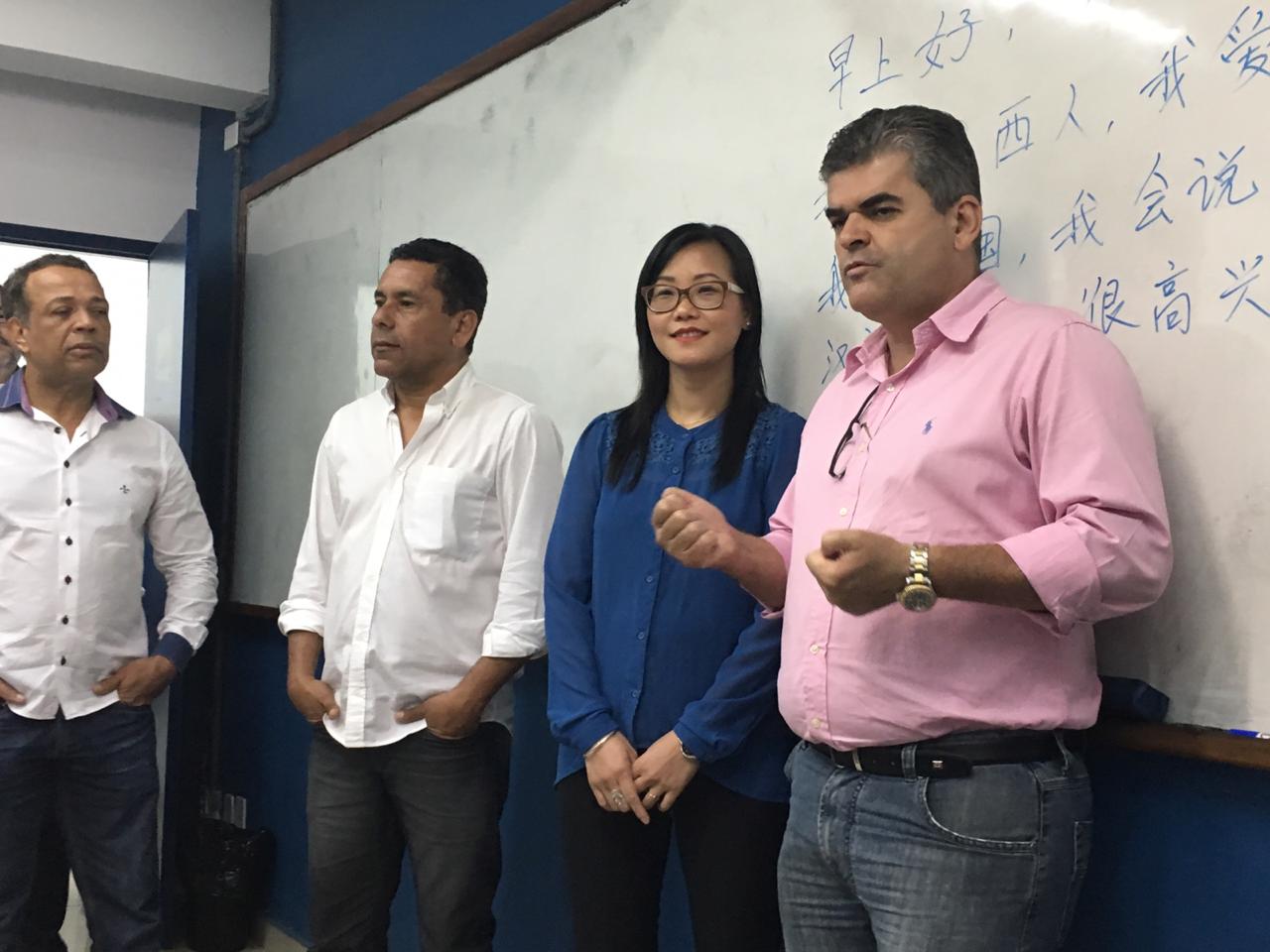 Em visita a uma das turmas do Curso de Iniciação ao Mandarim, na unidade Fundec Polo Social (bairro 25 de Agosto), o prefeito Washington Reis foi acompanhado pelo presidente da Fundec, Ed Wilson Lino e conversou com alunos e com a professora de mandarim, Silvia Ma, nascida na China e que ive no Brasil há 15 anos. Washington Reis destacou que o aprendizado do idioma será um diferencial a mais na formação intelectual e profissional dos milhares de jovens que buscam os cursos gratuitos oferecidos pela Fundação em Duque de Caxias.