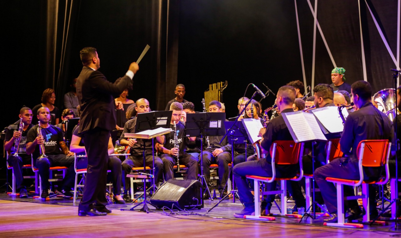 A Prefeitura de Duque de Caxias, por meio da Fundec - Fundação de Apoio à Escola Técnica, Ciência, Tecnologia, Esporte, Lazer, Cultura e Políticas Sociais, realizou nesta quinta-feira (25/07) o espetáculo Rock in Concert, da orquestra de metais e percussão da Fundação, no Teatro Raul Cortez.