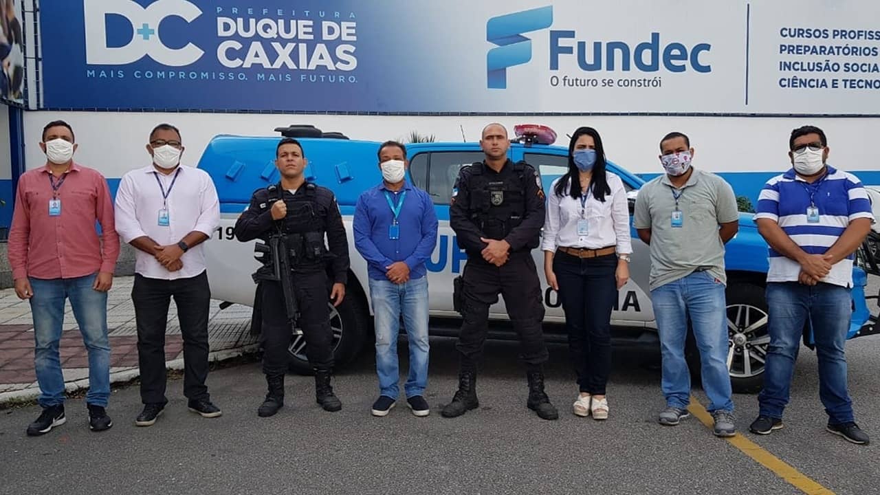 Nesta terça-feira (5), a Prefeitura de Duque de Caxias, por meio da Fundec, doou 310 máscaras de proteção individual aos Policiais Militares da Unidade de Polícia Pacificadora (UPP) do Morro do Alemão - sendo 300 máscaras de pano e outras dez de acetato, o ato foi realizado na sede da fundação.