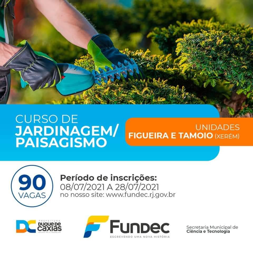 Outra novidade deste semestre da Fundec é o curso de jardinagem e paisagismo, ofertado nas unidades Figueira e Tamoio (Xerém), totalizando 90 vagas e carga horária de 170 horas. O curso tem como pré-requisito idade mínima de 16 anos e ensino fundamental I (1º ao 5º ano) completo.