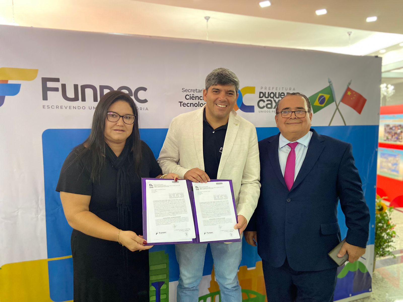 No último sábado (05), a Prefeitura de Duque de Caxias, através da Fundec, participou da cerimônia de abertura da Exposição Conjunta ‘Brasil - China’, na Associação Chinesa do Rio de Janeiro, na Tijuca. A iniciativa faz parte da 5ª edição da Exposição Internacional de Importação da China e da Exposição do Metaverso.