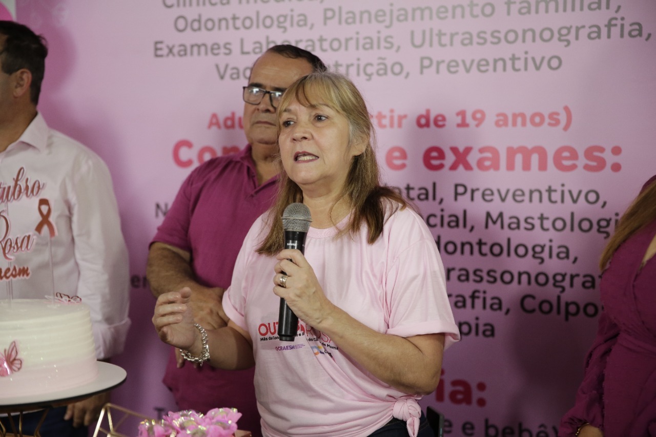 Nesta quarta-feira (19), dezenas de mulheres participaram de mais um evento pela campanha, realizado no CRAESM – Centro de Referência e Atenção Especializada à Saúde da Mulher, que contou com a presença do prefeito Wilson Reis e sua esposa Lea Reis; da subsecretária de Saúde, Dra. Célia Serrano; do Vereador Júnior Reis; do presidente da Fundec, Jonas Santana, entre outros convidados e colaboradores.