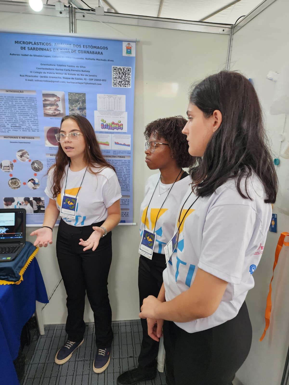 As alunas do lll Colégio da Polícia Militar de Duque de Caxias conquistaram medalha de ouro com o projeto orientado pela professora de Biologia Cristina Santos e pela professora de Química Karina Batista. As estudantes do 1º Ano do Ensino Médio: Isabel Lopes, Lidiane Clemente e Nathália Machado ganharam o prêmio, cujo tema versava sobre “Microplásticos no estômago das sardinhas da Baía de Guanabara”.