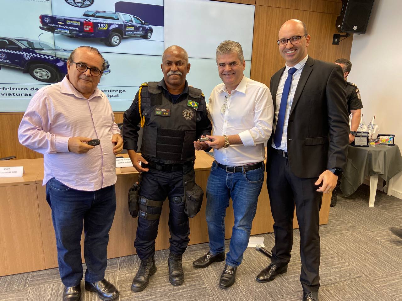 Na ocasião, foram inauguradas as novas instalações do 3° DPA – Departamento de Polícia de Área da Polícia Civil, que vai funcionar no térreo da sede do CISPBAF, na Avenida Brigadeiro Lima e Silva, n° 1189, no bairro 25 de Agosto. Também foram entregues duas viaturas para o patrulhamento preventivo e proteção ambiental da Guarda Municipal. O ex-prefeito Washington Reis, fundador do CISPBAF e secretário de estado de Transporte e Mobilidade Urbana, foi homenageado junto com o prefeito Wilson Reis e outras autoridades.