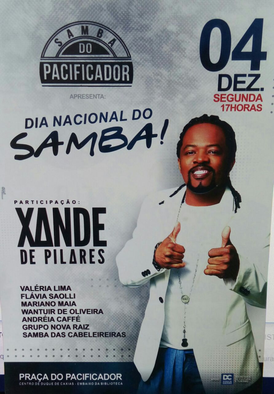 Criado em 1962, o Dia Nacional do Samba não vai passar em branco em Duque de Caxias. Celebrado todos os anos no dia 2 de dezembro (este ano cai no sábado), a data será lembrada na segunda-feira (04), a partir das 17h, no projeto Samba do Pacificador, promovido na primeira segunda-feira do mês na Praça do Pacificador. Com hora para começar e sem hora de acabar, o projeto já recebeu personalidades consagradas nos estilos de samba enredo, partido alto, pagode, exaltação, breque e samba rock entre outros gêneros.