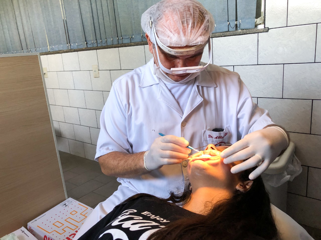 Manuela Freitas, de 12 anos, é uma das centenas de pacientes atendidas pelo Dr. Abílio Carneiro, profissional responsável pela área de Ortodontia no CEO da Prainha, primeiro distrito. Na quarta-feira, 05 de junho, a adolescente foi a unidade, acompanhada de sua mãe Alessandra, para a implantação do seu primeiro aparelho ortodôntico. “Esse é o segundo atendimento da minha filha no CEO da Prainha e já vai sair daqui com o aparelho nos dentes. Manuela fez a consulta no dentista da unidade básica da Vila Leopoldina e foi encaminhada pra cá. Na rede particular não teríamos condições de fazer um tratamento como esse. A Prefeitura está de parabéns por oferecer um serviço deste nível para a população”, destacou a mãe, Alessandra.