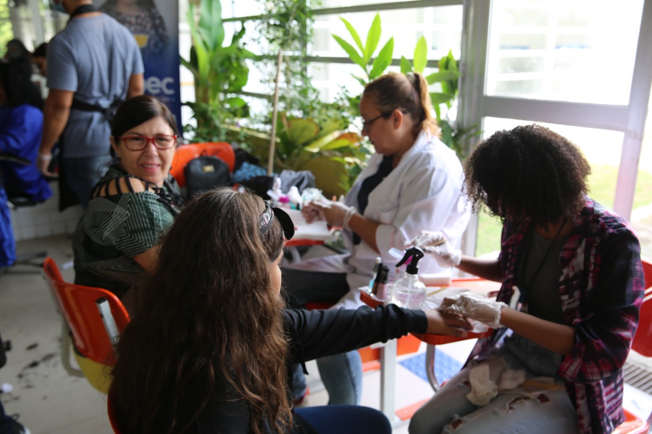 A Secretaria Municipal de Saúde, em parceria com a Fundec, promoveu um Dia de Beleza, oferecendo gratuitamente serviços de manicure, design de sobrancelhas, cabeleireiro, entre outros.