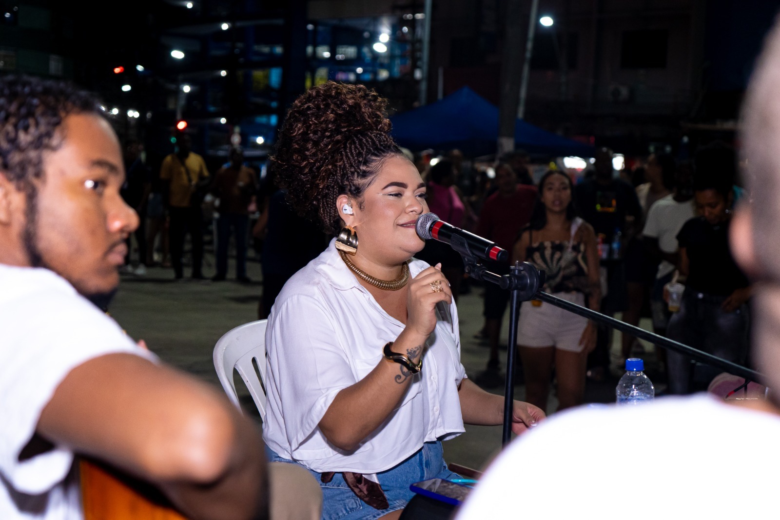 Na última segunda-feira (19), o Circuito Cultural Boca Pra Fora retornou à Praça do Pacificador, no Centro de Duque de Caxias, com a tradicional roda de samba comandada pelo cantor e percussionista Tiago Testa, após um hiato por conta das chuvas. O projeto, que já está em sua 3ª edição, é realizado pela Secretaria Municipal de Cultura e Turismo (SMCT/DC), em parceria com a FUNARJ, e garante acesso às apresentações musicais e culturais gratuitas, com a participação de nomes da música popular brasileira.