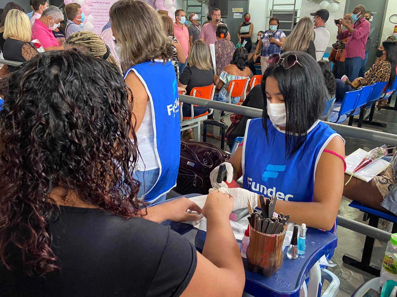 Entre as ações oferecidas às mulheres em Xerém, o dia de beleza com a equipe da Fundec foi uma das mais concorridas. A Fundec também disponibilizou oficina de iniciação ao corte e costura. Durante o café da manhã, dezenas de brindes foram sorteados para as participantes, que puderam ainda tirar dúvidas sobre os serviços e atendimentos oferecidos pelo CRAESM.