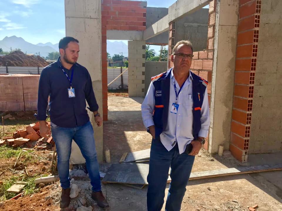 Nesta quarta-feira (10), o secretário municipal de Obras João Carlos Grilo visitou as obras de construção das duas creches do bairro Jardim Anhangá em companhia do subsecretário Valber Januário.