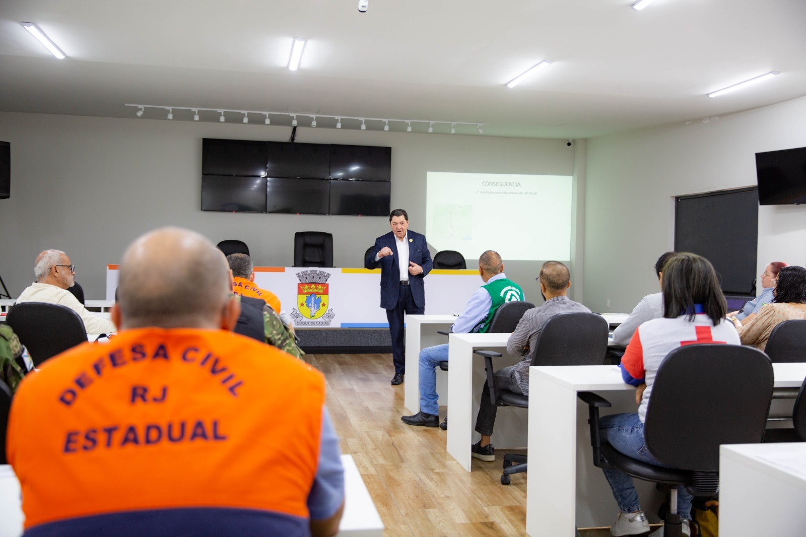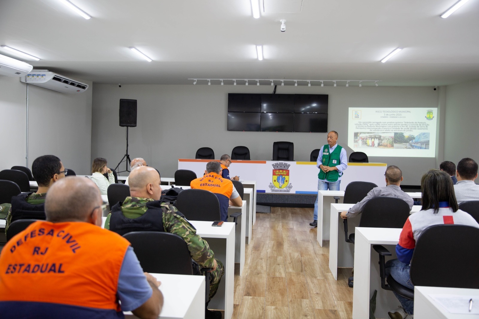 A Defesa Civil de Duque de Caxias realizará, no dia 5 de junho, Dia do Meio Ambiente, um simulado de desastre tecnológico na Rodovia Washington Luiz (BR 040), na subida da serra de Petrópolis. A última reunião com agentes públicos e voluntários, envolvidos no treinamento, foi realizada na manhã desta segunda-feira (29), no auditório da prefeitura, em Jardim Primavera. Participaram representantes da Polícia Rodoviária Federal; seguranças; Concer; Bombeiros; representantes dos órgãos ambientais do estado, de Duque de Caxias e de Magé; Defesa Civil estadual; voluntários e funcionários da empresa envolvida na simulação do acidente, entre outros participantes. A ação terá início às 14h.