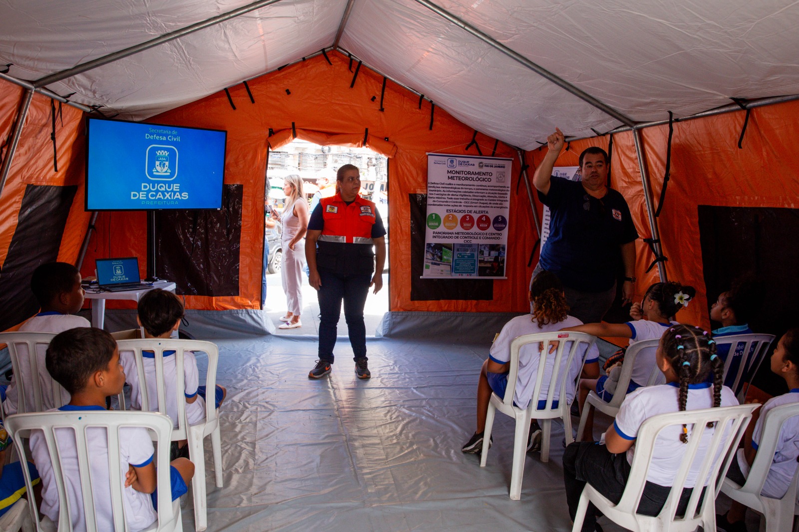 Além do público que visitou os estandes, alunos de quatro escolas da rede municipal participaram de atividades lúdicas, de simulados e de jogos educativos, como a “Trilha da Resiliência”, os quais reforçaram a importância de ações preventivas no dia a dia. Durante o evento, a Secretaria Municipal de Defesa Civil apresentou seus serviços e ações, esclareceu dúvidas sobre riscos estruturais, geológicos e hidrológicos e realizou a captação de solicitações de vistoria, reforçando que essa inspeção pode ser solicitada por meio do Colab. A Secretaria de Estado de Defesa Civil também marcou presença com uma palestra sobre percepção de risco de desastre e exposição de materiais, enquanto o Grupamento de Operações com Produtos Perigosos demonstrou equipamentos e realizou um simulado de combate a incêndio, orientando o público sobre como agir diante de uma situação de emergência.