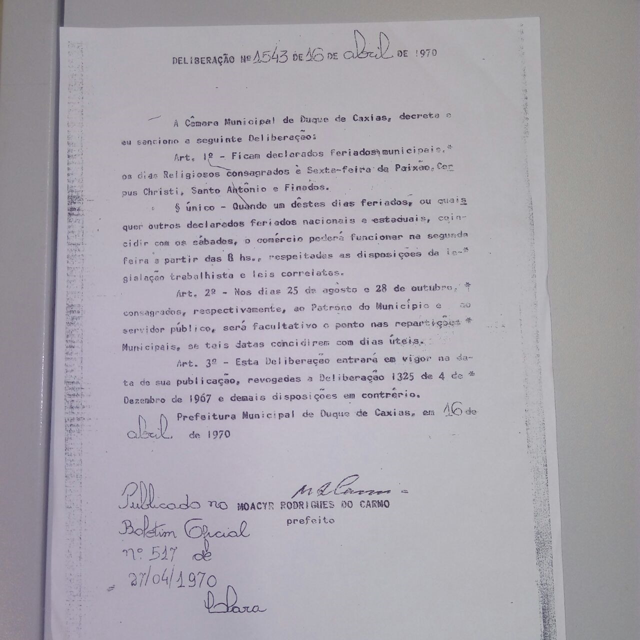 A Prefeitura de Duque de Caxias informa que na próxima segunda-feira (13/06), Dia de Santo Antônio, será feriado municipal. A data é consagrada ao Padroeiro da cidade pela Deliberação 1.543, de 16 de abril de 1970.