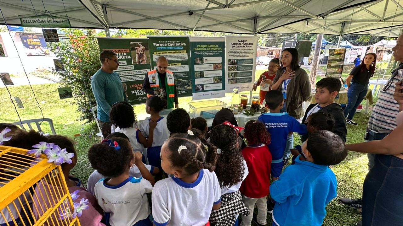 Nessa quarta-feira (22), a Prefeitura de Duque de Caxias, por meio da Secretaria Municipal de Meio Ambiente, realizou uma programação especial em comemoração ao Dia Mundial do Animal, celebrado oficialmente no dia 4 de outubro. O evento aconteceu na Praça do Monte, no Parque da Equitativa, e teve, como foco, a valorização e a conservação da fauna silvestre, além de promover a conscientização sobre o bem-estar animal e o compromisso do município com as causas ambientais e sociais. O Setor de Biodiversidade abordou o risco da presença de animais domésticos em ambientes naturais e orientou sobre a importância da convivência harmoniosa entre espécies.