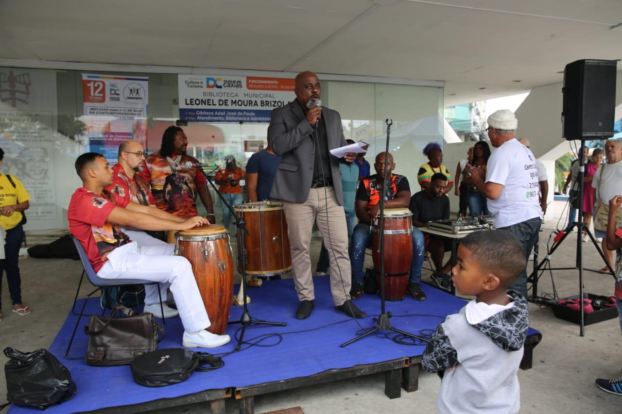Do lado de fora da biblioteca, além de uma Feira de Artesanato com itens à venda ligados à cultura afro-brasileira, ocorreram apresentações de samba de roda, capoeira e maculelê. Em seu interior, o evento contou com uma roda de conversa sobre antirracismo e o 13 de Maio como tema, tendo, como mestre de cerimônias, o Dr. Luiz Felipe Roque, advogado, presidente da Comissão de Igualdade Racial da OAB de Duque de Caxias e representante da organização no COMDEDINEPIR. “Queremos sair na frente, marcando em Duque de Caxias o 12 de Maio como um dia para se refletir sobre o dia 13 e sobre o racismo estrutural em nossa sociedade. Nossa roda de conversa procurou ser bem abrangente, com a presença de advogados, uma assistente social e um psicólogo que conhecem e lidam com tema”, afirmou Dr. Roque.