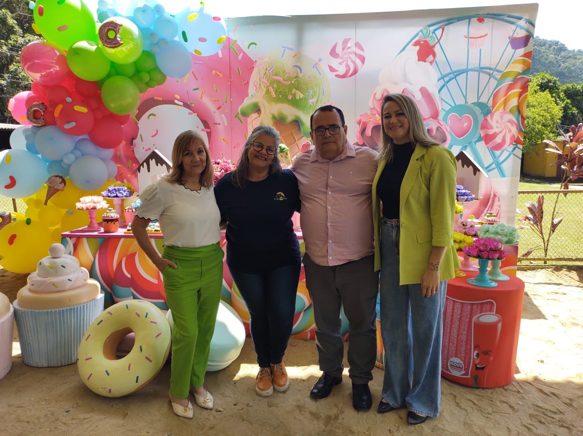 O prefeito Wilson Reis esteve na festividade, ao lado da diretora do projeto Equinovida, Michelle Siqueira, e da psicopedagoga e gestora da Fundec Inclusão, Adriana Bessa.