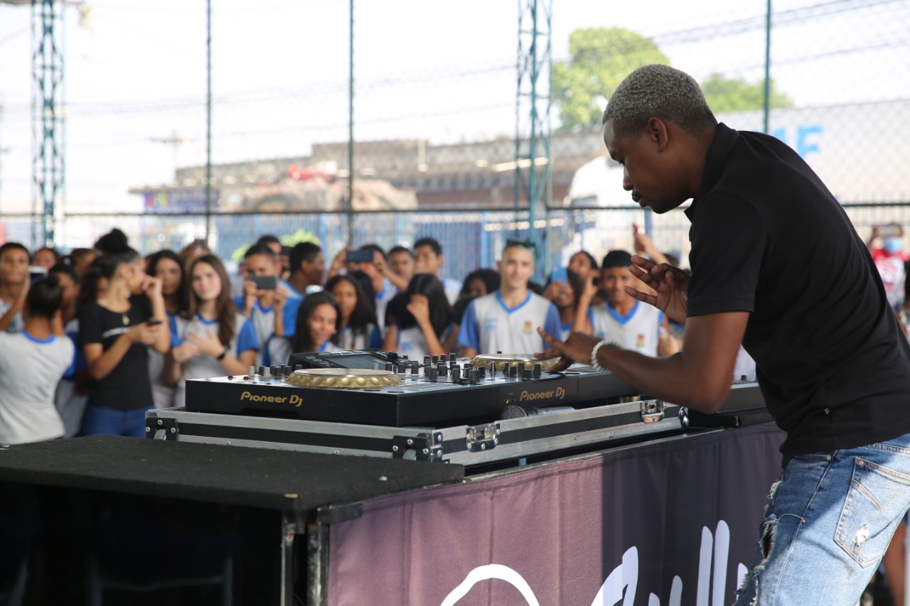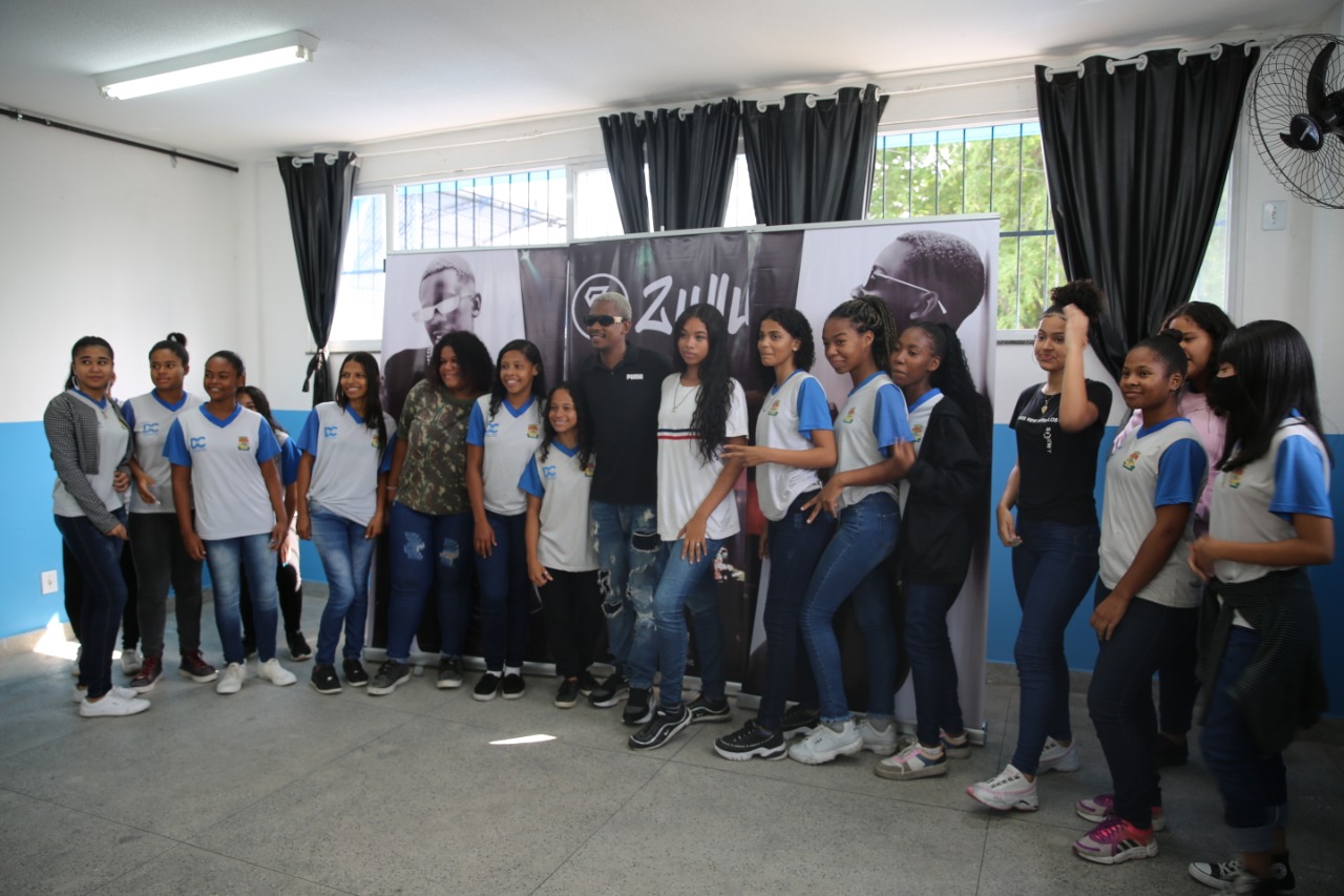 Os alunos da Escola Municipal Dulce Trindade Braga tiveram nesta quinta-feira (02) um dia letivo diferente, com a presença do DJ Zullu. Por meio de uma parceria entre a Secretaria Estadual de Cultura e Economia Criativa e a Secretaria Municipal de Educação de Duque de Caxias, o artista pode mostrar sua arte e dialogar com os estudantes, através do Projeto Zulluzada.