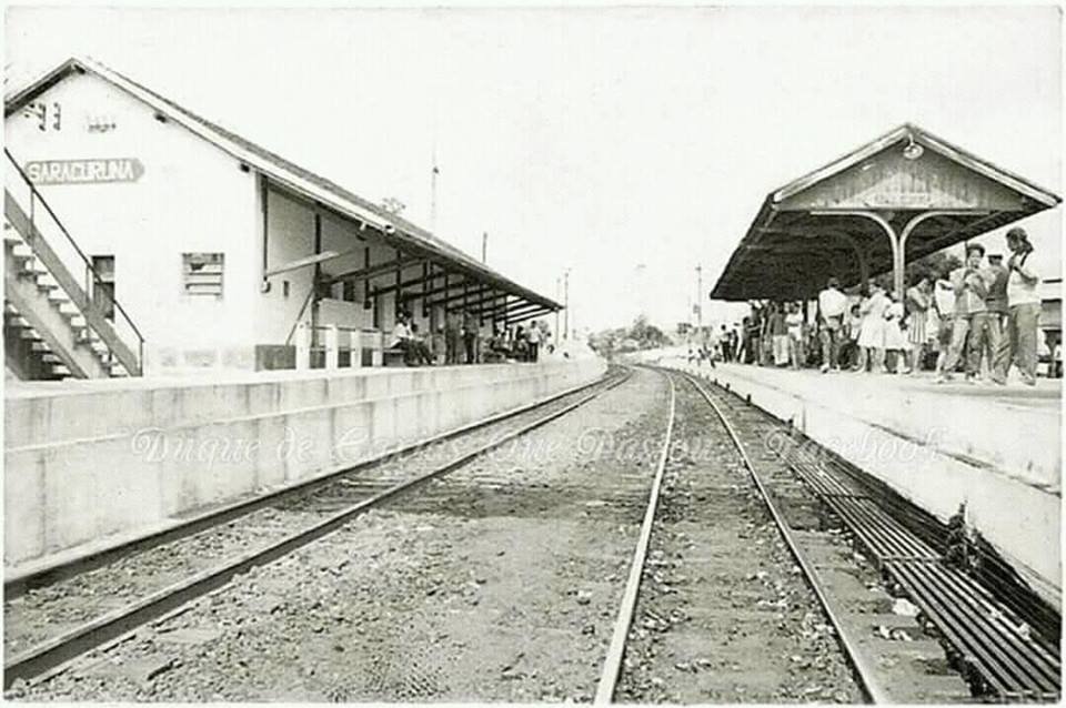 No dia 24 de abril de 1888 entrava em funcionamento a Linha Férrea Rosário, ligando o centro do Rio de Janeiro a Petrópolis e Três Rios. Nos anos 1940, o seu nome foi alterado, passando a se chamar Estação Ferroviária de Saracuruna, como conhecemos na atualidade.