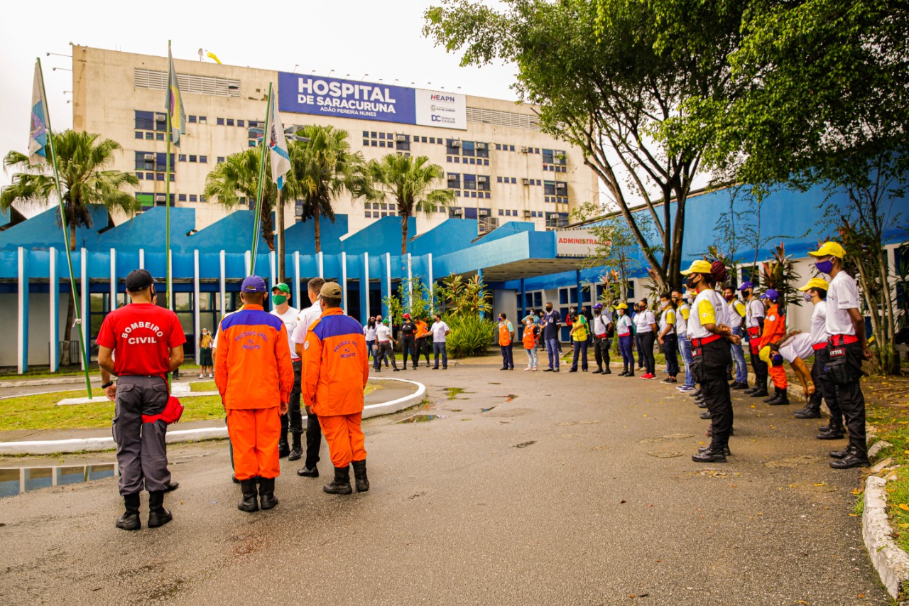 A cerimônia, que aconteceu na manhã desta quinta-feira (19/11) contou com a presença de membros da direção do hospital e convidados. O evento foi coordenado pela Subsecretaria de Defesa Civil de Duque de Caxias, através do Diretor de Proteção Comunitária, Ariel Blanco, e contou com a participação da Associação de Veteranos da Brigada Paraquedista, Voluntários do Processo Apell, Grupo Desbravadores, Grupo Uniforça, Escoteiros e Brigada Ambiental do município. A cerimônia contou ainda com a participação do músico Rogério Silva Sax, que é da reserva da Força Aérea Brasileira e que faz um trabalho voluntário de levar música, através do seu saxofone, para ambientes hospitalares da rede pública municipal e estadual.
