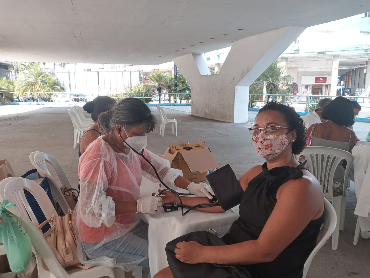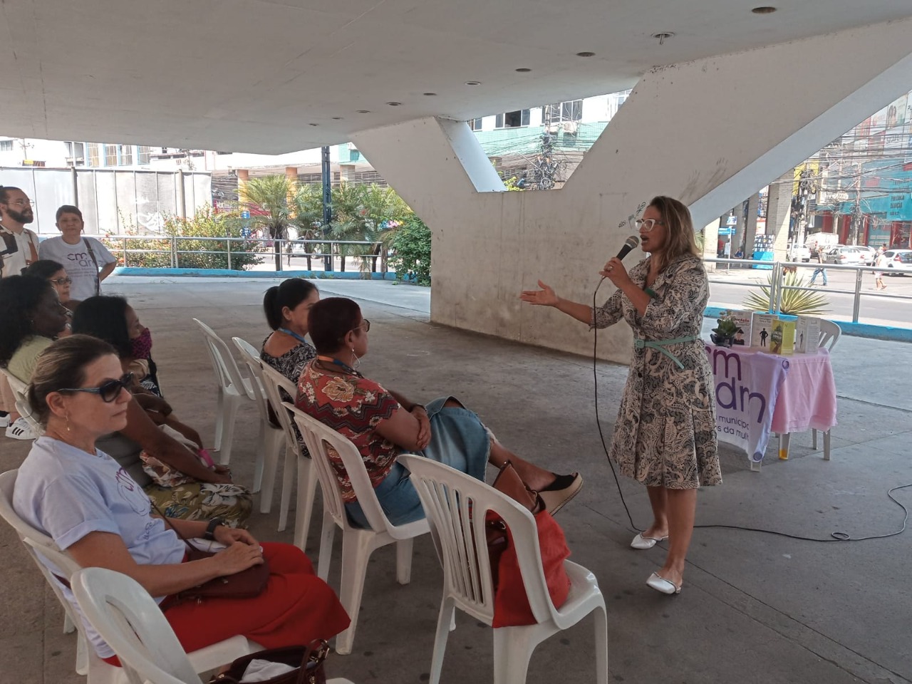 Foram oferecidos diversos serviços gratuitos, como verificação de pressão arterial, teste de glicose, teste de Covid, além de encaminhamento para ultrassonografia e mamografia, auriculoterapia, 1ª e 2ª via de Identidade e Registro Civil, isenção de casamento e atendimentos pelo SINE – Sistema Nacional de Emprego. Também teve palestra sobre “Sororidade entre as mulheres”, com a palestrante Graça Santos, convidada pela presidente do CMDM, Madalena Melo.