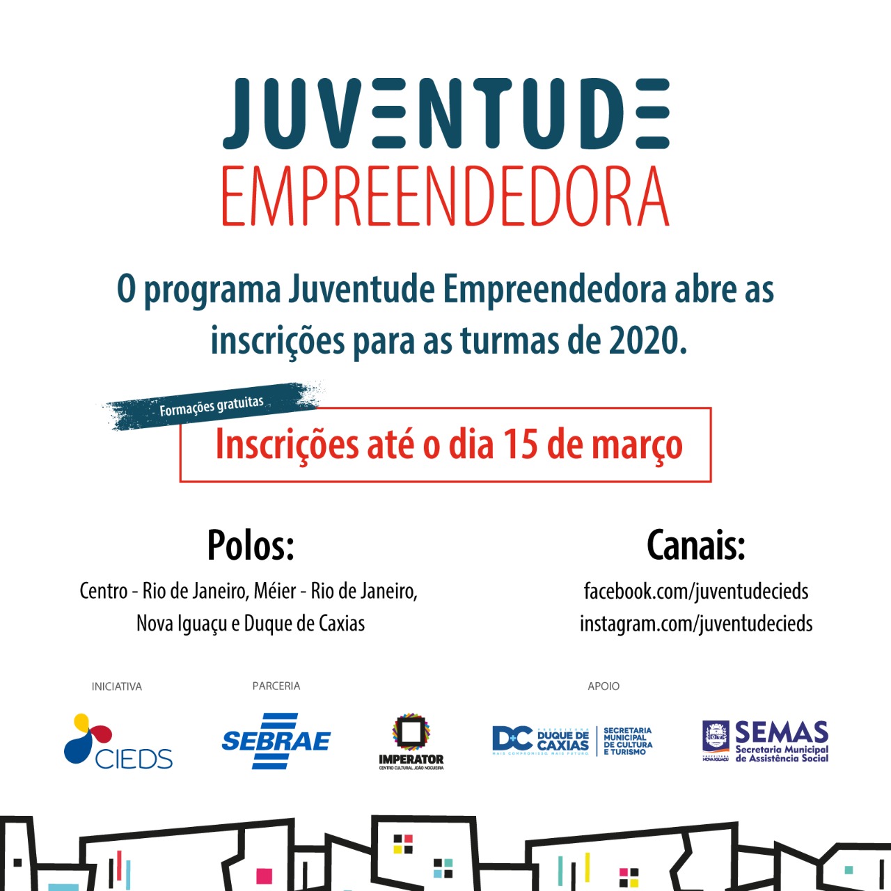 INSCRIÇÕES ABERTAS PARA O JUVENTUDE EMPREENDEDORA 2020 EM DUQUE DE CAXIAS