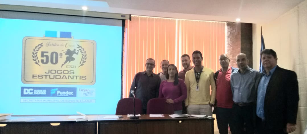 A Secretaria Municipal de Esporte e Lazer de Duque de Caxias abriu inscrições para a 50ª edição dos Jogos Estudantis Duquecaxienses que este ano devem contar com a participação de cerca de seis mil alunos das redes municipal, estadual e particular de ensino. A apresentação do projeto do Jubileu de Ouro dos jogos foi nesta quinta-feira no auditório da FIRJAN/SESI para representantes de 50 escolas do município, da Fundação de Apoio à Escola Técnica, Ciência, Tecnologia, Esporte, Lazer, Cultura e Políticas Sociais – FUNDEC e da FIRJAN/SESI, parceiras dos jogos. A abertura será em agosto, no ginásio do SESI/Caxias, na Rua Artur Neiva, 100, em dia e horário a serem anunciados em breve.