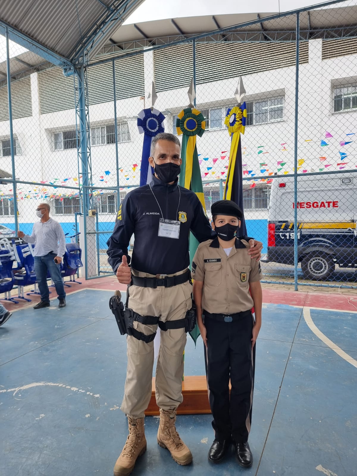 Ainda durante a palestra, o aluno Eduardo, do 7º Ano de Escolaridade, expressou sua vontade de seguir a carreira de PRF. Ele entregou aos policiais rodoviários uma homenagem como forma de agradecimento.