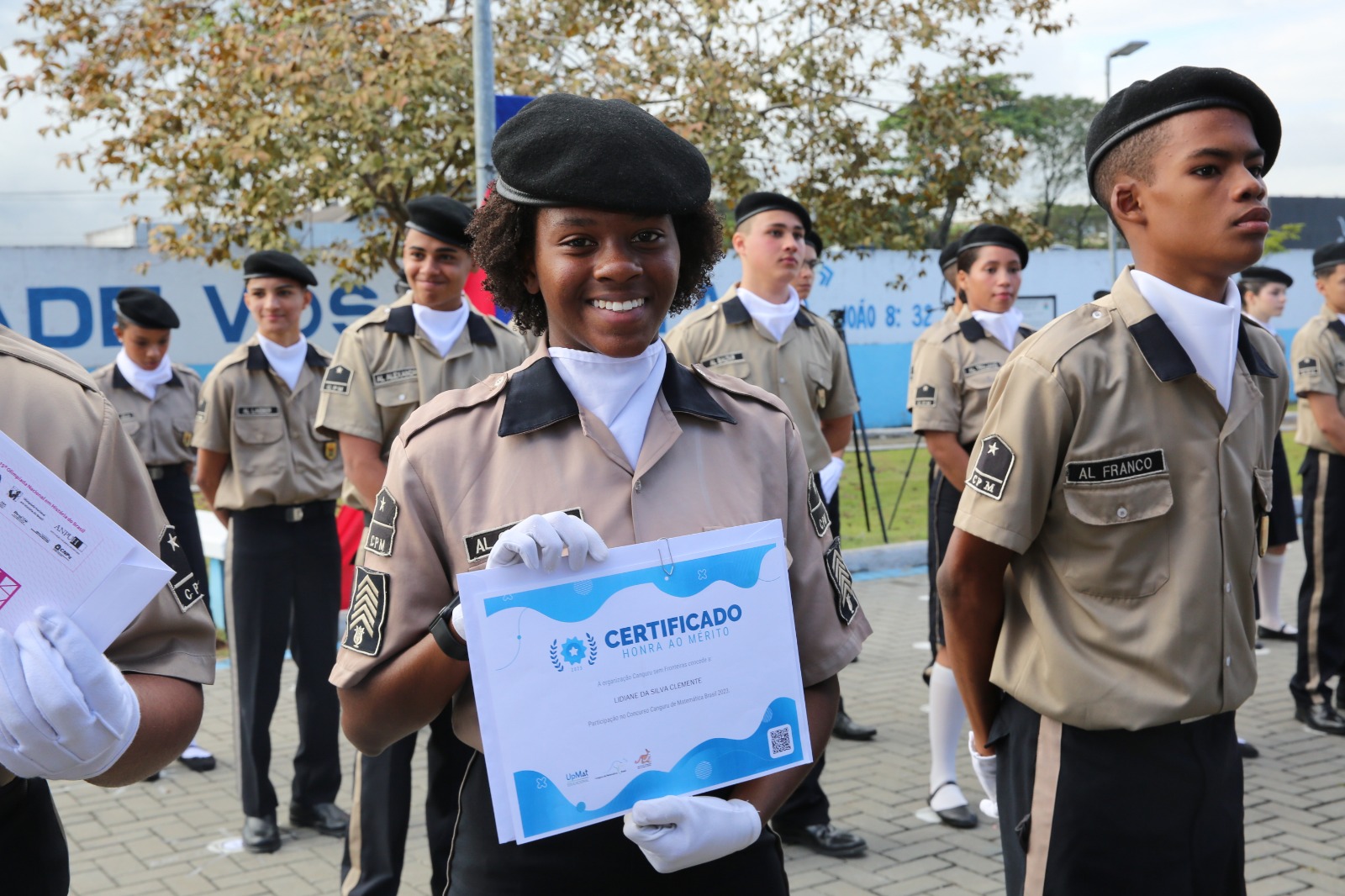 Também foram entregues os certificados aos alunos que se destacaram nas Olimpíadas Canguru de Matemática e Brasileira de Matemática das Escolas Públicas – OBMEP e Química. A cerimônia foi marcada pela emoção: foram inauguradas três alamedas, no lll CPM/ERJ, homenageando três militares, dois policiais que faleceram durante uma ocorrência em Duque de Caxias, 3º sgt Roberto Rino de Souza e CB PM Felipe Moura Cardoso Soresini e o Gal Bda Olívio Gondim de Uzêda, combatente na conquista de Monte Castelo, em 21 Fev 1945.