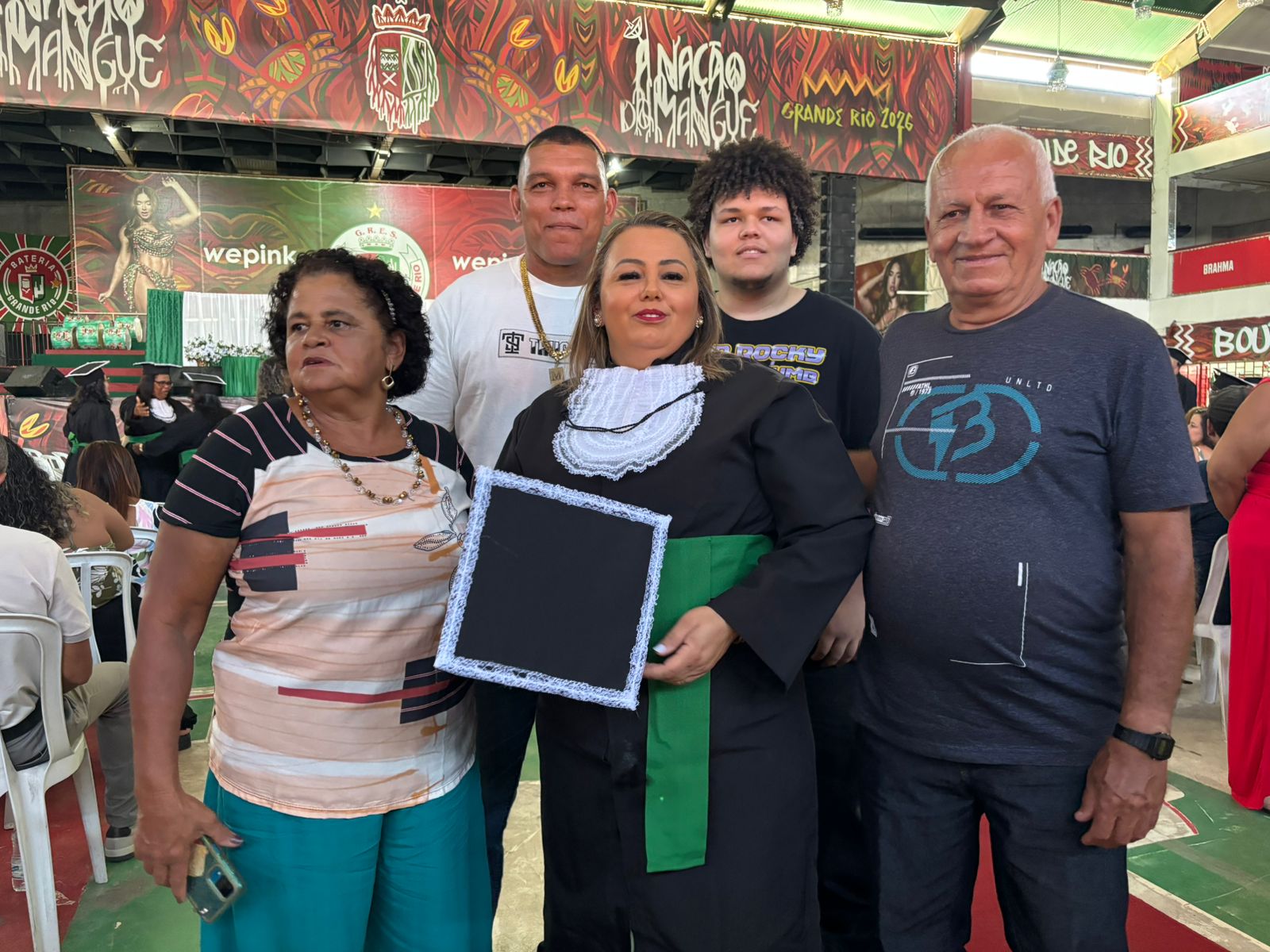 A Agente Comunitária de Saúde (ACS), Marcia Regina Borges, há 21 anos exercendo o cargo na USF do Parque Eldorado, levou toda a família para compartilhar da felicidade de receber o diploma da formação do Mais Saúde Com Agente.