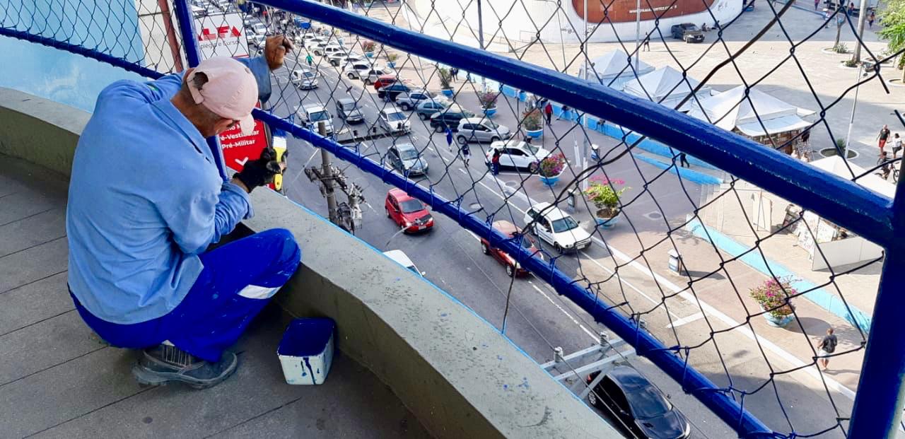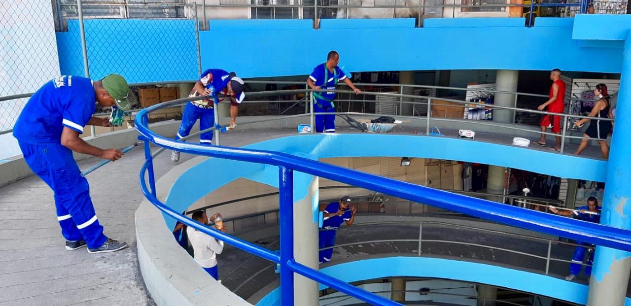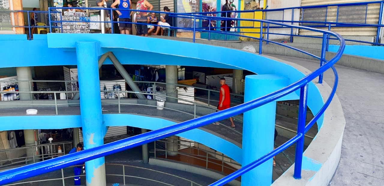 A Secretaria Municipal de Obras de Duque de Caxias iniciou nesta segunda-feira (06), dentro do programa de revitalização dos espaços públicos, a reforma do Mercado Popular, localizado na esquina da Avenida Leonel de Moura Brizola (antiga Presidente Kennedy) com a Rua Dr. Manoel Teles, no Centro da cidade. O serviço de pintura está sendo realizado por administração direta, sem contratação de empresas, com funcionários do Departamento de Parques, Praças e Jardins da SMO.
