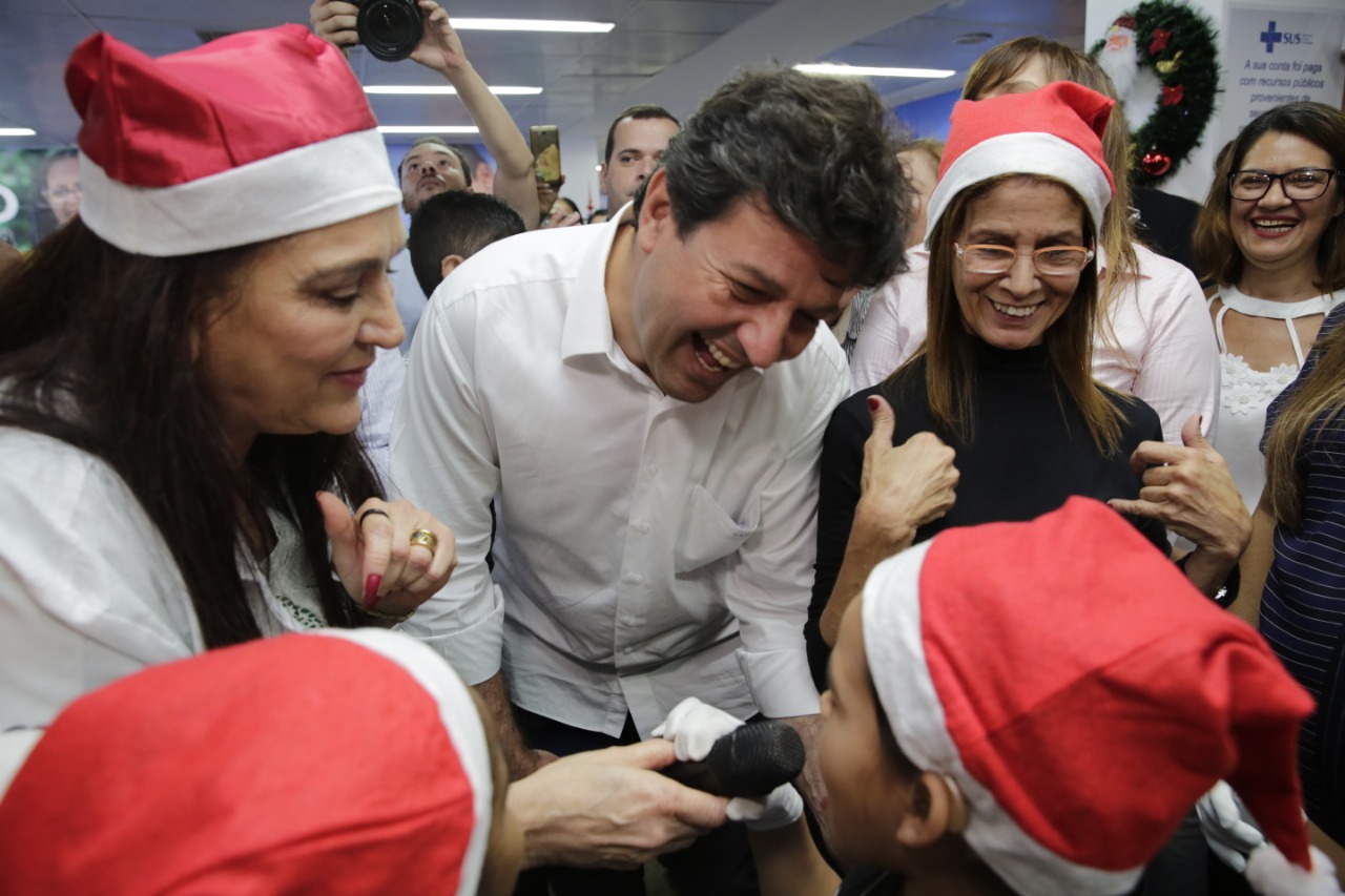 O ministro da Saúde Luiz Henrique Mandetta participou da entrega do aparelho auditivo ao menino Eduardo França Gonçalves, 11 anos, morador de Cuiabá (MT), que teve seu pedido de Natal feito por carta aos Correios e atendido pela Prefeitura de Duque de Caxias.
