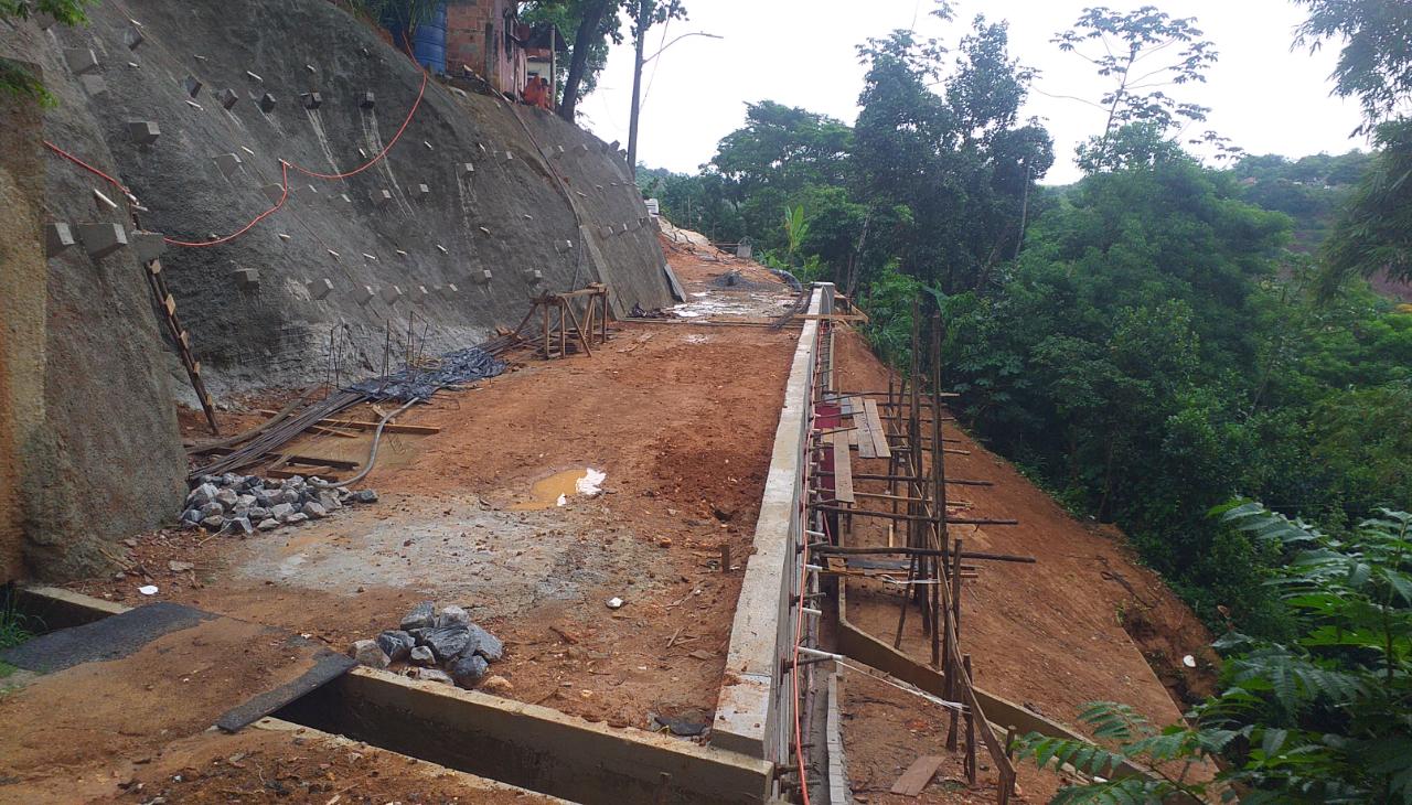 Mais uma obra importante para prevenção de deslizamentos no município está quase concluída. A Secretaria Municipal de Obras e Defesa Civil está terminando a construção do muro de contenção de 20 metros de comprimento total e altura variável entre 14 e 16 metros, que está sendo construído na Rua Doze, na Vila Canaã, localizada no quarto distrito da cidade.