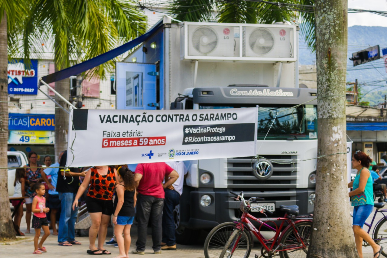 A Secretaria Estadual de Saúde e a Prefeitura de Duque de Caxias realizam nesta semana mais uma ação de combate ao sarampo com o objetivo de imunizar os moradores da cidade. Até quinta-feira (30/01), das 8h às 13h, estarão montadas tendas de vacinação na Praça do Pacificador. Já o caminhão itinerante esteve hoje (27/01) na Praça da Mantiquira, em Xerém, e seguirá a seguinte rota: terça-feira (28/01), atenderá na Praça Brasil, no bairro Pantanal, quarta-feira (29/01) na UBS Amapá, que fica na rua Andreia, s/n, bairro Barão do Amapá, e quinta-feira o veículo estacionará na UBS José Camilo, na Rua Agostinho Oliveira, n 615, bairro Jardim Santana do Pilar.
