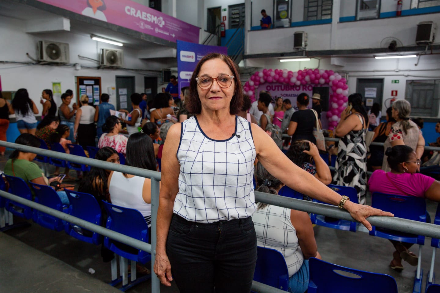 Maria da Penha, 63 anos, aproveitou as comemorações da campanha para colocar consulta e exames em dia. Ela é paciente do CRAESM desde o ano passado e reforçou a importância da unidade de saúde para as mulheres do município.