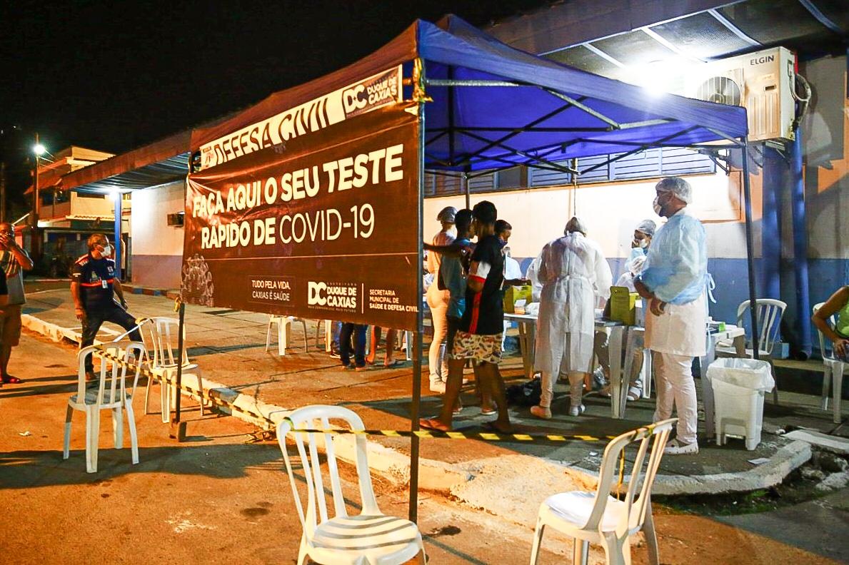 Durante o anúncio da obra da nova unidade, equipes da SMSDC estiveram no local promovendo a testagem rápida da Covid-19 nos moradores do bairro. Ao todo, 160 pessoas procuraram os funcionários e realizaram o exame. Todos apresentaram resultado negativo para o novo Coronavírus. O Posto de Saúde 24 horas do Pilar será construído na Rua Carlos Avelar, s/n, em frente à UPH do Pilar, em Duque de Caxias. Fotos: Gabriel Mendes