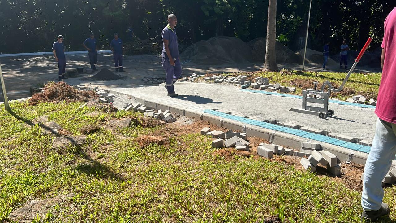 Nesta semana foram realizadas a pavimentação asfáltica, a construção de piso intertravado, construção de rampa de acessibilidade, limpeza de piscina e poda de árvores.