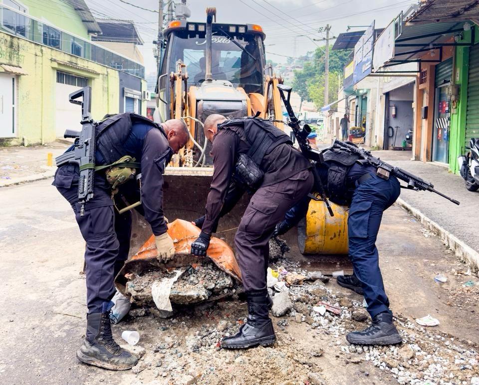 Em uma ação integrada entre o governo do estado, a prefeitura, o 15° BPM, a Guarda Municipal, o Programa Estadual de Integração na Segurança (PROEIS) e o sistema de vigilância e monitoramento da cidade (SMARTDuque) — que utiliza inteligência artificial, reconhecimento facial e leitura de placas — foram retiradas, somente nessa segunda-feira, mais de 152 toneladas de barricadas em 67 pontos da Mangueirinha, no Corte 8. A operação foi acompanhada pelo prefeito Netinho Reis, que destacou a importância de devolver ao cidadão duque-caxiense a tranquilidade: