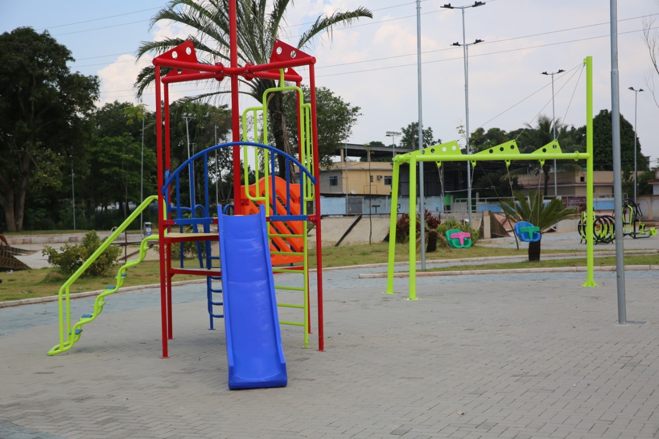 Moradora do bairro, Maria Ferreira Alves acompanha a obra de perto desde o início. “Essa praça é maravilhosa. Não vi nada tão grandioso e variado em matéria de área de lazer na nossa cidade. Essa era uma área abandonada, coberta de matagal mais alto que as pessoas. Agora será um local para todos se divertirem e praticarem esportes”, elogiou. Fotos: Eliakin Moura