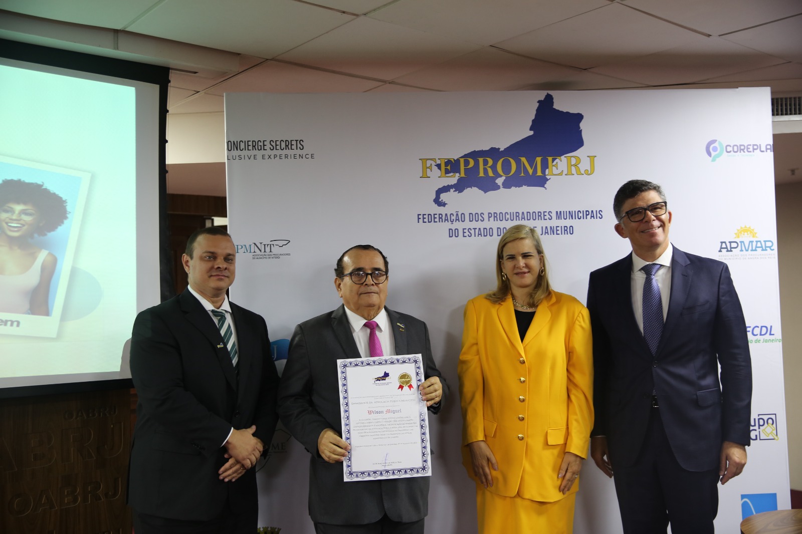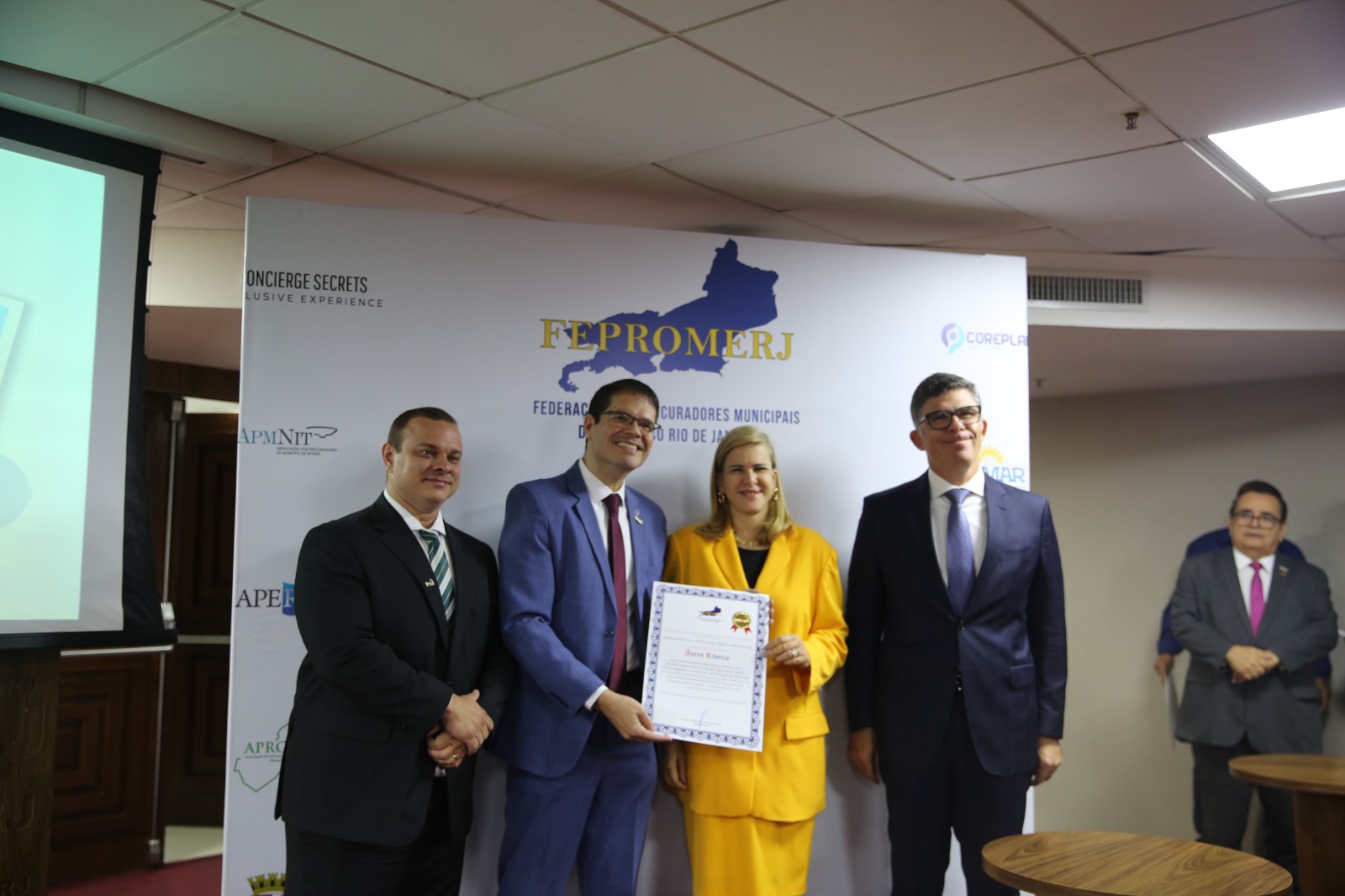 Durante a cerimônia, a FEPROMERJ homenageou o prefeito Wilson Reis com o título de Embaixador da Advocacia Pública, em reconhecimento ao seu apoio contínuo à categoria. Além disso, o procurador-geral de Duque de Caxias, Dr. Fabrício Gaspar, foi agraciado com o prêmio “Algacir Teixeira de Lima”, em reconhecimento aos relevantes serviços prestados à sociedade.