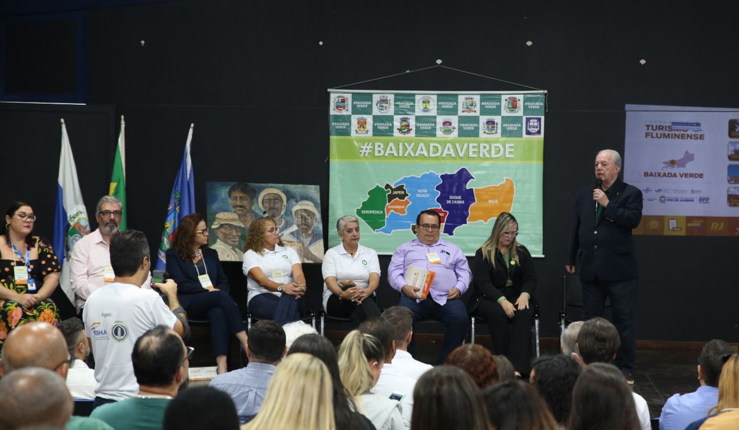 A Secretaria de Estado de Turismo (Setur-RJ) e a TurisRio realizaram, na última terça-feira (25/07), uma edição da Jornada do Turismo Fluminense com foco na região turística da Baixada Verde. O evento ocorreu no Centro Cultural Meritense, em São João de Meriti, e contou com a presença do prefeito de Duque de Caxias, Wilson Reis, secretários e servidores das prefeituras da região, além de agentes de desenvolvimento e representantes comerciais que lidam com o turismo local. O principal objetivo da jornada foi a elaboração de um plano de ações continuadas, visando o desenvolvimento do turismo na região pelos próximos anos.