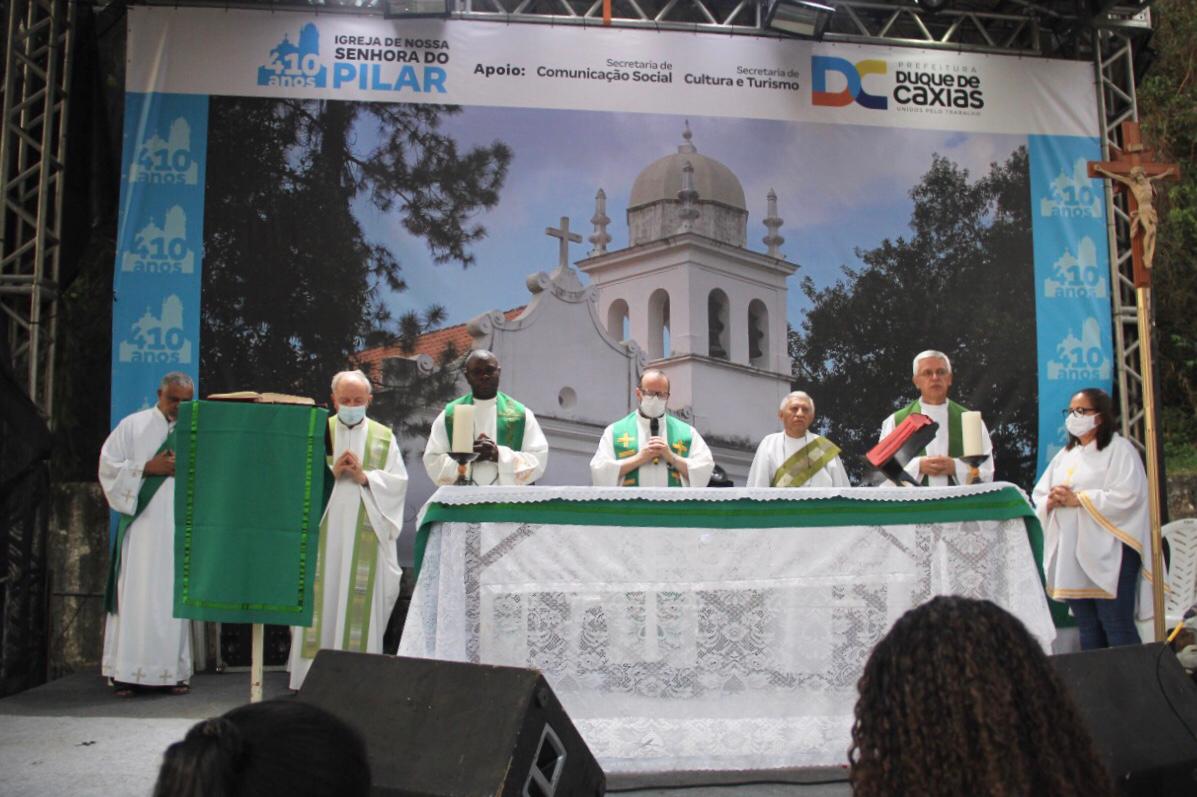 No sábado, o evento começou às 17h com uma missa de celebração da data ministrada pelo padre Renato Gentile, Vigário Geral da Diocese de Duque de Caxias. A missa ocorreu em campo aberto, no pátio em frente à igreja, que está fechada para reformas, previstas para serem concluídas em outubro. “Nossa igreja histórica, celebrando seus 410 anos, será reaberta para os devotos, totalmente reformada. Este ano é muito marcante para todos nós, e não apenas para os católicos de Duque de Caxias”, declarou o padre.