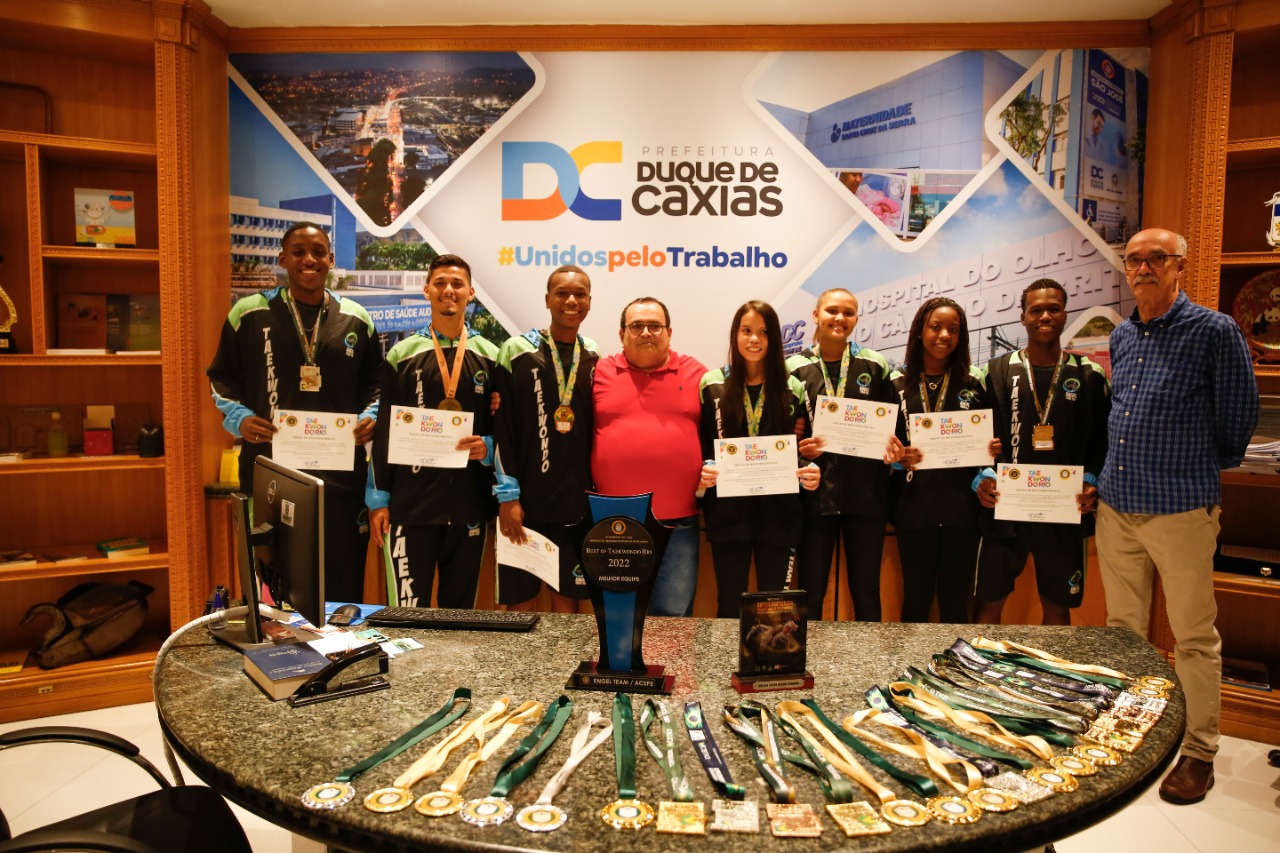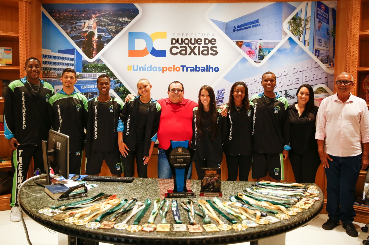O Prefeito de Duque de Caxias, Wilson Reis, recebeu, em seu gabinete, na última segunda-feira (19), membros da equipe duque-caxiense Engel Team. Eles apresentaram os prêmios que ganharam durante o ano de 2022, entre eles os recebidos agora em dezembro na última edição da Copa do Brasil de Taekwondo, e o troféu de melhor equipe do estado em 2022, oferecido pela Federação de Taekwondo do Rio de Janeiro. No evento da entrega do troféu, os atletas da equipe foram homenageados por seus destaques nacionais e internacionais.