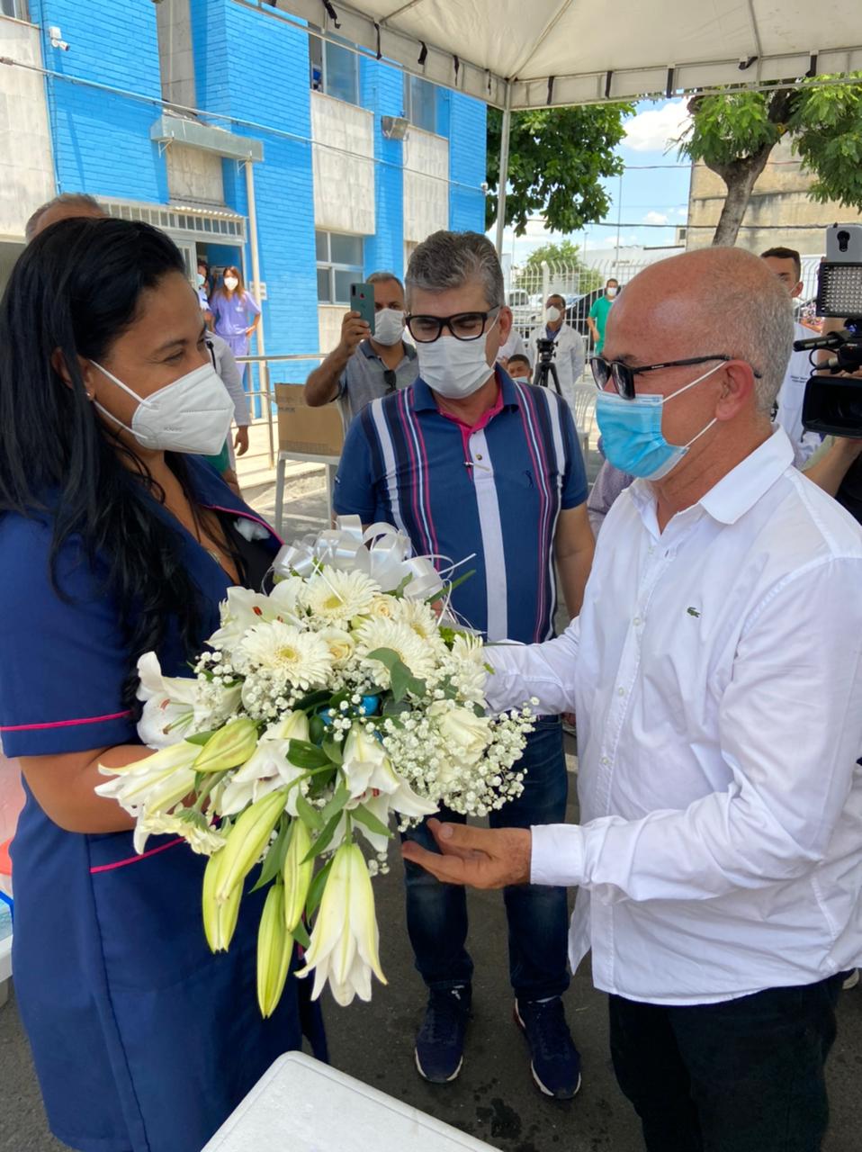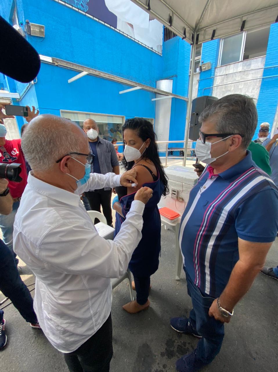 Logo em seguida, o prefeito Washington Reis cumprimentou a enfermeira e declarou que esse momento é histórico. “Aplicamos hoje a primeira de milhares de doses de vacinas. Nesta primeira fase, é muito importante ressaltar que as pessoas não devem se desesperar e devem respeitar o calendário de imunização. Nossa rede municipal de saúde se estruturou e se preparou para esse momento. Todos serão vacinados”, garantiu.