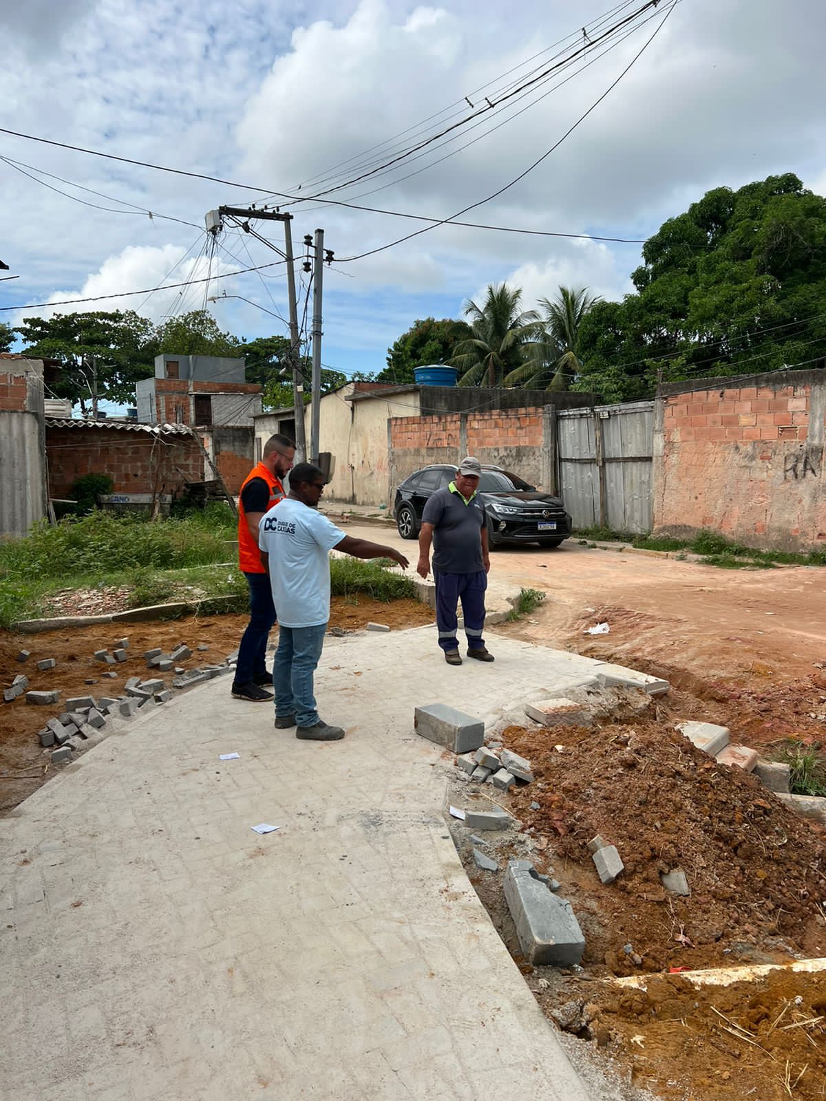 A secretaria de obras projetou, no local, uma passagem junto com a construção de uma calçada, para atender os pedidos feitos pelos moradores. A calçada, feita com piso intertravado, é permeável e sustentável, permitindo que a água da chuva penetre no solo e diminua o risco de enchentes e alagamentos.
