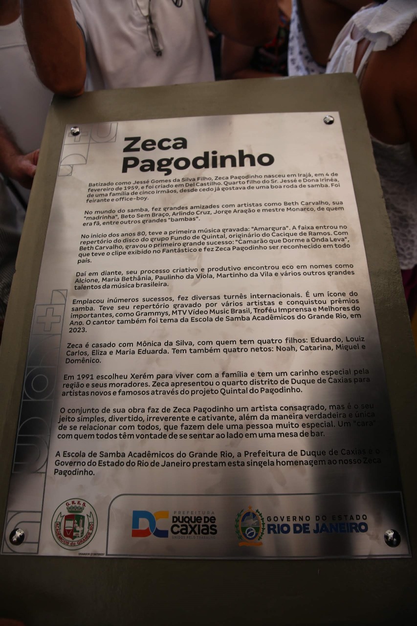 “Duque de Caxias tem um carinho especial pelo Zeca Pagodinho, nosso morador mais ilustre e um grande ícone da cultura brasileira. Essas homenagens são mais do que merecidas. A Praça de Xerém e o Cantinho do Zeca estão prontos e entregues ao nosso povo”, declarou o prefeito Wilson Reis.