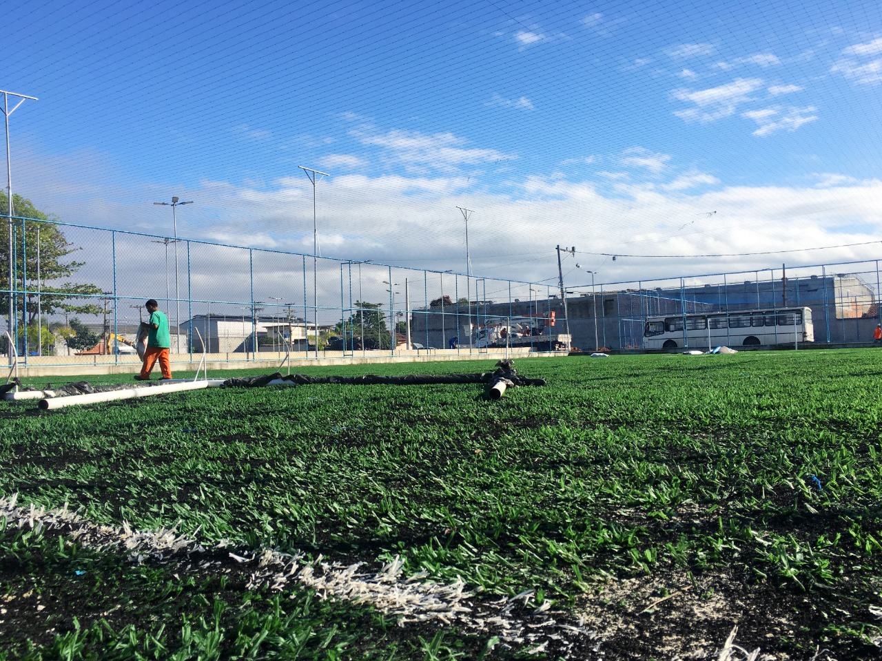 A Praça da Pioneira, construída por administração direta, será entregue aos moradores com área de convivência, campo de futebol de grama sintética, arquibancada, quadra poliesportiva, playground, quiosque, academia para terceira idade e jardins, futebol e tênis de mesa, além de outros atrativos para as famílias e iluminação de led. As obras estão na fase final. Fotos: Leonardo Pereira